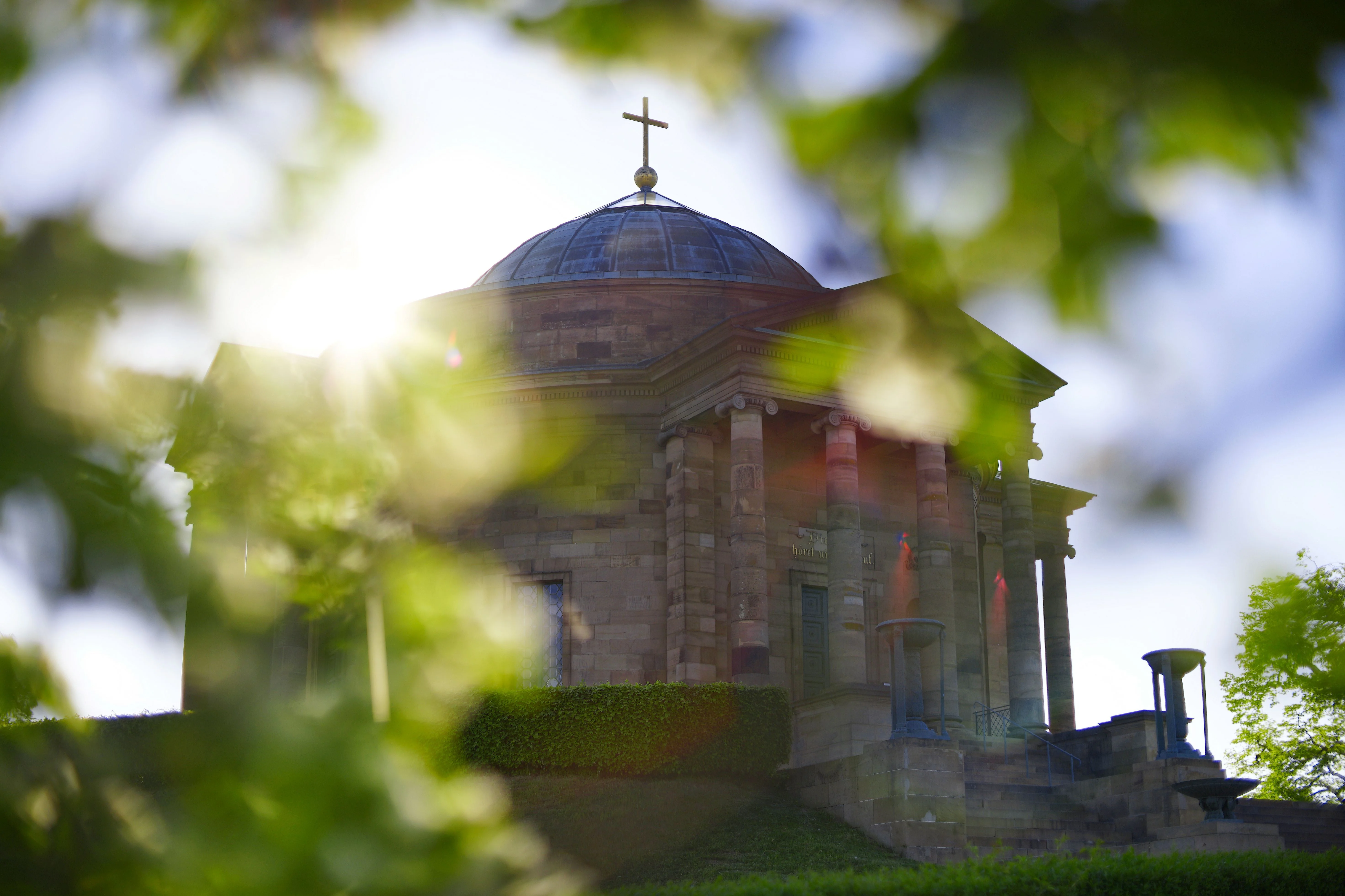 Im Abendlicht verwandelt sich die Grabkapelle in einen magischen Ort.